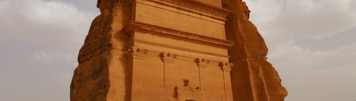 Qasr al-Farid, „Samotny Zamek”, to najsłynniejszy i najczęściej fotografowany grobowiec Medain Saleh, stojący odizolowany na pojedynczym masywnym bloku skalnym jak architektoniczny pomnik w środku pustynnego krajobrazu. Ta czteropiętrowa fasada wysoka na ponad dwadzieścia metrów jest najlepiej zachowana i najbardziej proporcjonalna spośród wszystkich grobowców, gdzie klasyczne kolumny, kapitele korynckie i precyzyjnie wykuty fronton tworzą efekt monumentalnej świątyni choć wnętrze zawiera jedynie prostą, niedokończoną komorę grobową. Qasr al-Farid nigdy nie został ukończony co jest widoczne w nieobrobionej dolnej części fasady i braku inskrypcji identyfikującej właściciela, pozostawiając tajemnicę kto miał być pochowany w tym imponującym mauzoleum i dlaczego prace zostały przerwane. Teoria sugeruje że budowa została zatrzymana przez rzymskie podbicie 106 roku naszej ery które zakłóciło społeczeństwo nabatejskie i zaprzestano finansowania prywatnych projektów funeralnych tej skali.